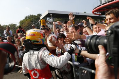 Formel 1, Grand Prix Italien 2012, Monza, 09.09.2012 Parc Ferme Sieger Lewis Hamilton (1.) McLaren-Team