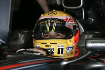 Formel 1, Grand Prix Bahrain 2008, Sakhir, 06.04.2008 McLaren-Box Lewis Hamilton (13.), McLaren-Mercedes MP4-23