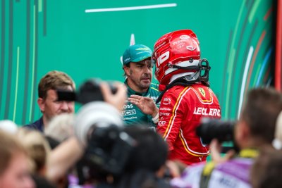 Formel 1, Grand Prix Niederlande 2024, Zandvoort, 24.08.2024 Qualifying Parc Ferme Fernando Alonso (10.) Charles Leclerc (3.)